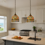 Here is the most beautiful design pendant with Mosaic. The lights emitted from this beautiful lampshade gives a decent ambiance around your living and shows the elegance of the owner. This is the most decent and popular lamp ever made in Mosaic Industry, it fits in any decor and emphasize the decency of the any interior.